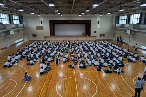 7月17日(木)、英国・ウェールズのペングライス校(Penglais School)との姉妹校交流の最終日を迎えました。書道部は79期2年生6名がパフォーマンスを行い、自分たちで考えた題字やメッセージを音楽にのせて揮毫しました。ペングライス校の皆さんとも交流でき、とても実りある時間を過ごしました。