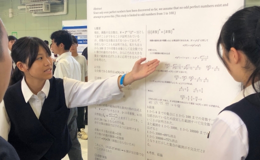 8月6日並びに8月7日、神戸国際展示場にてスーパーサイエンスハイスクール生徒研究発表大会が開催されました。本校からは3年生3名が、サイエンス探究の授業で深めた自分たちの研究「縮小版オセロの必勝木」を携えて参加しました。全国から集まった高校生や、審査員として参加する大学の先生方の前で堂々と発表する姿は、それまでの地道な努力に裏打ちされた素晴らしいものでした。