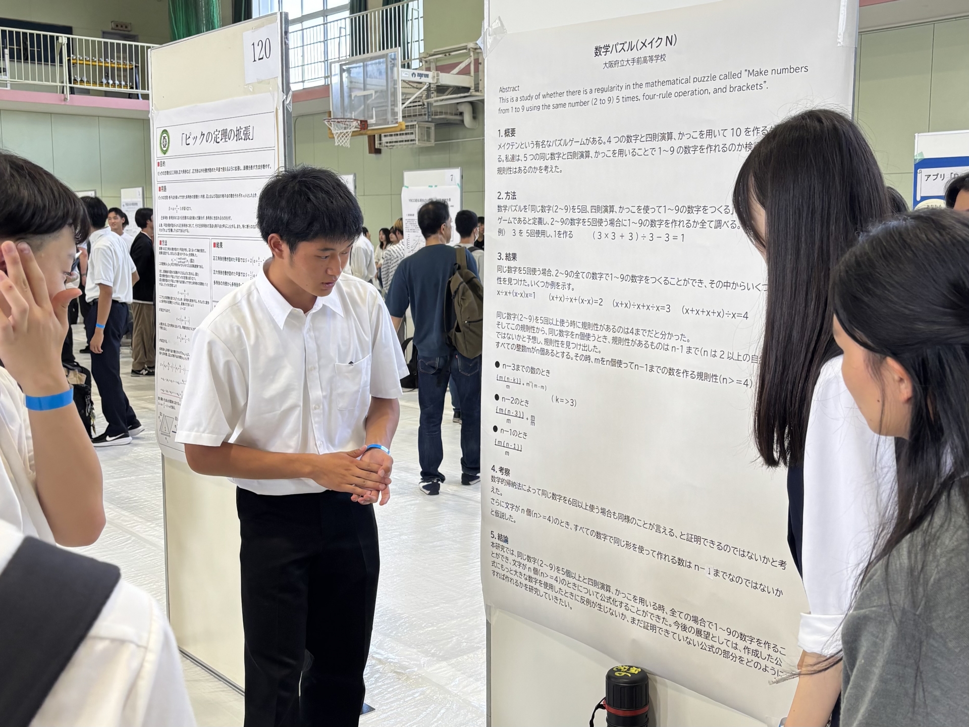 2025年10月18日(土)に、令和7年度大阪府生徒研究発表会(大阪サイエンスデイ)第1部が大阪府立天王寺高等学校で行われました。大手前高校より、「数学パズル」「奇数の完全数」を研究した2つの研究グループが学校を代表して発表しました。